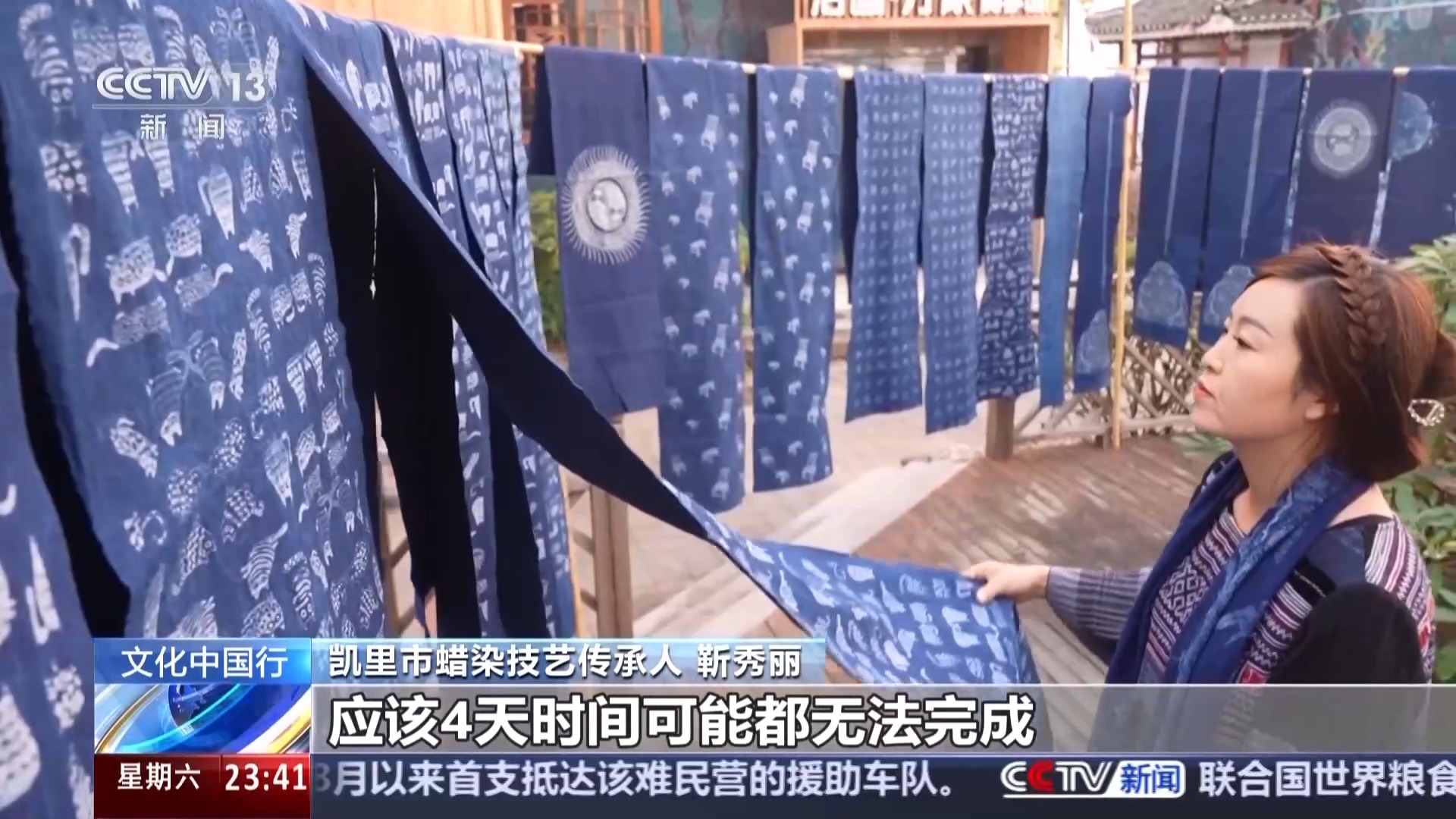 凯里市蜡染技艺传承人 靳秀丽:传承非遗技艺不是放在博物馆里面去给它保护起来传承,广大人民群众使用,我觉得它是最好的传承。所以我也想通过我们的一个方式去传播这项非遗技艺文化,让更多的人使用、感受到我们贵州的这种民族文化多姿多彩的美。