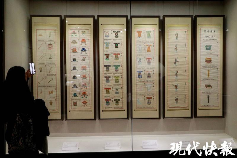 据了解,94年前,为了让美国观众更好地了解和认识中国的京剧艺术,梅兰芳特意请画师绘制了京剧的剧场、乐器、兵械、砌末、行头、古装戏衣、脸谱、冠巾、胡须、扮相谱、舞目和舞谱等精美的画轴,以中英文对照的形式做了注解和说明。这些图谱在美国各地的剧场里悬挂、陈列,成为外国观众欣赏中国京剧艺术的“指南”。