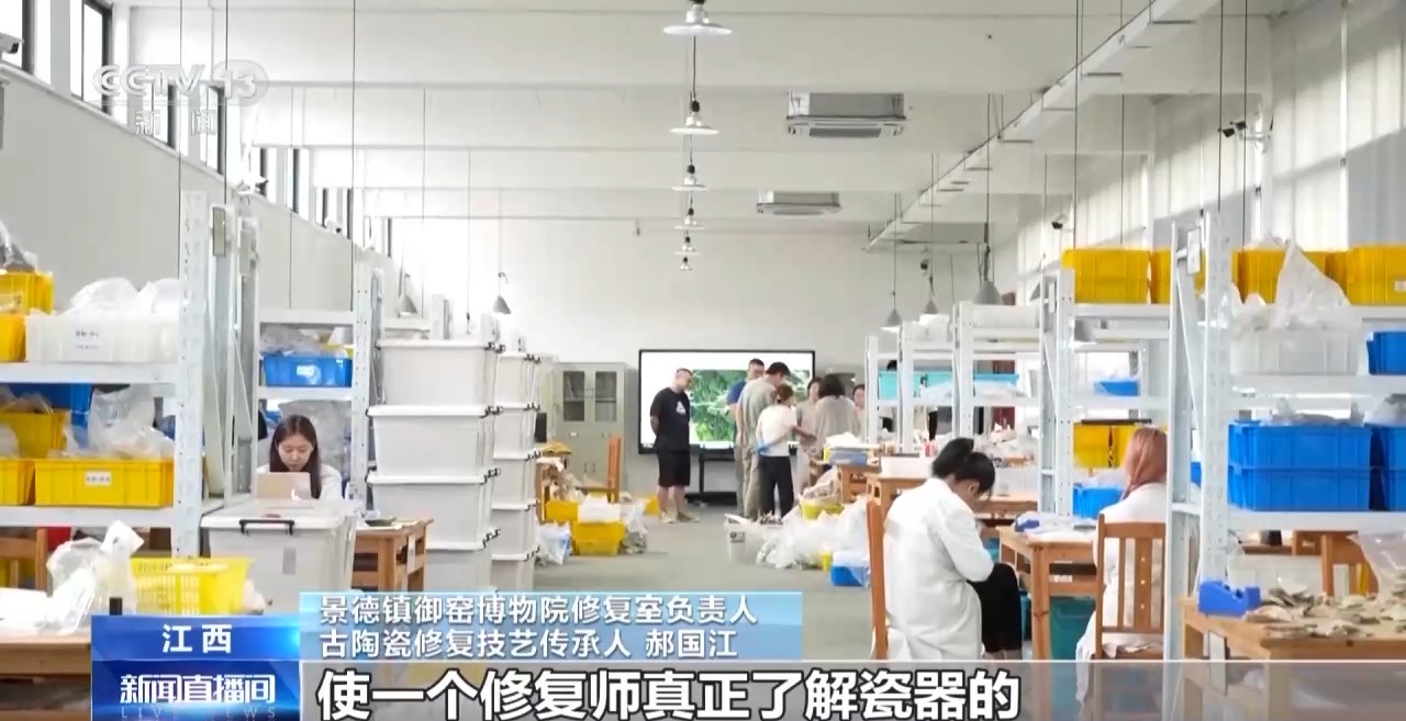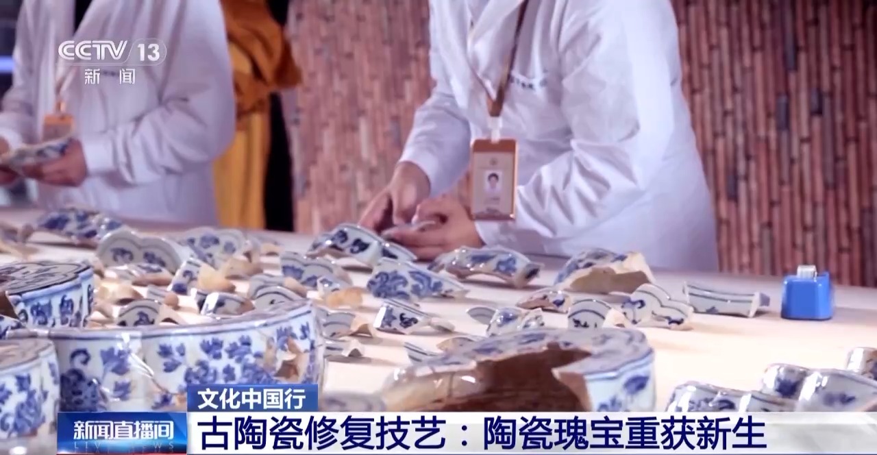 景德镇御窑博物院修复室负责人古陶瓷修复技艺传承人郝国江:在这个过程中,我们运用到了多级分类系列复原的方法,使一个修复师真正了解瓷器的同一类文物的烧造工艺、装饰手法、纹饰绘制等特别细小的特点、特征,让修复表达出它原有的一些历史信息。