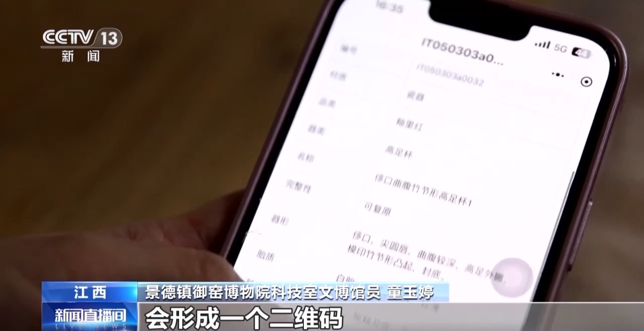 景德镇御窑博物院科技室文博馆员童玉婷:修复档案制作完成之后会形成一个二维码,传到我们的古陶瓷基因库数字化平台。古陶瓷基因库现在完成了第一期库房的收录工作,第一期包含了2400套明代御窑的标本,每1套含有4种物理形态,所以是近万件标本。