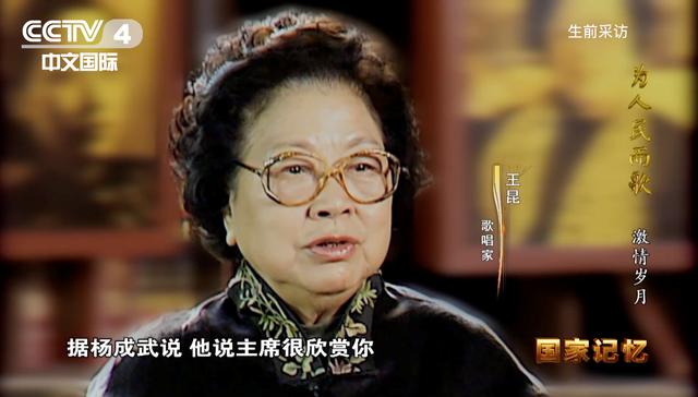 在一阵嘹亮的音乐声中,王昆英姿飒爽地唱着《农友歌》走到了舞台中央。毛泽东主席看到后,对王昆的表演不住地称赞。