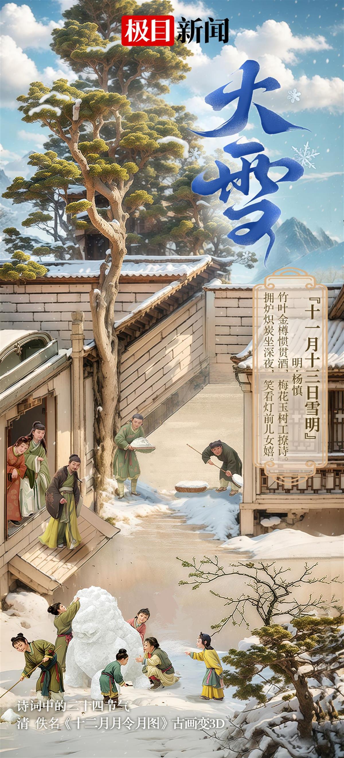 12月6日迎来二十四节气中的大雪节气。大雪到来标志着时入仲冬,也就是“寒冬腊月”的第二个月。本期《诗词中的二十四节气》,极目新闻记者专访武汉大学文学院教授汪超,请他解析相关诗词。