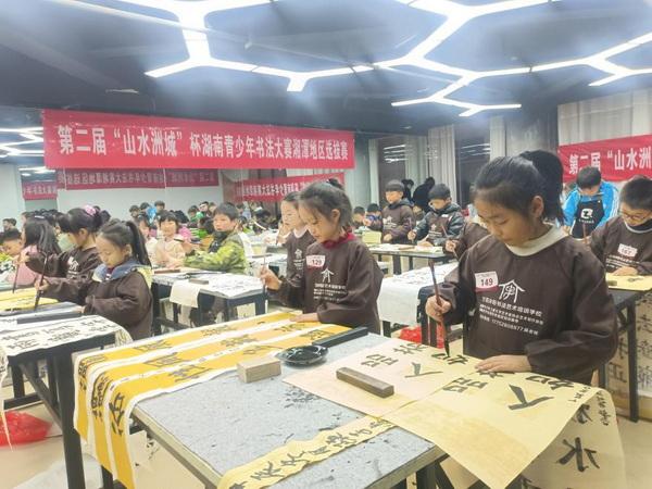 长沙晚报掌上长沙12月5日讯(通讯员 吕晋)2024年11月30日,一场备受瞩目的青少儿书法大赛盛事——由湖南省青年书法家协会、长沙晚报社共同主办、湘潭青书协承办的第二届 “山水洲城” 杯湖南青少儿书法大赛湘潭地区选拔赛,在湘潭市、湘潭县、湘乡市三地同步举行。这场赛事绝非仅仅是一场普通的竞技比赛,它更是一次意义深远的文化传承实践之旅,承载着挖掘和培养新一代书法人才的重要使命,同时也肩负着弘扬中华优秀传统文化的沉甸甸重任。有近千名青少儿热情高涨地参与其中,这一壮观景象不仅淋漓尽致地展现了他们对书法艺术的由衷热爱,更从侧面反映出社会各界对传统文化教育的高度重视。