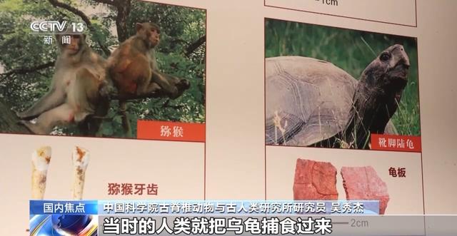 其中,爬行动物我们发现了大量的乌龟化石,龟壳上面有很多切砍、砍伐的痕迹,说明当时因为这个地方离长江比较近,当时的人类就把乌龟捕食过来,当成食物。
