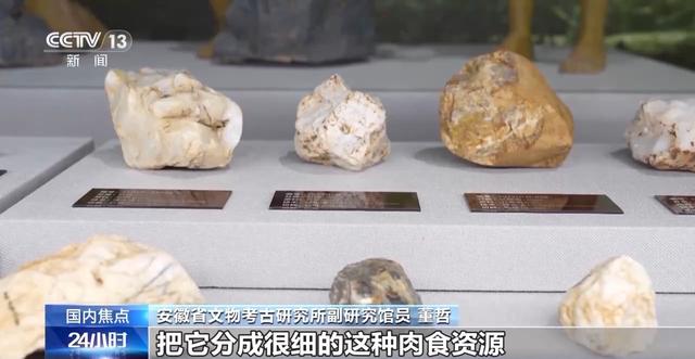 安徽省文物考古研究所副研究馆员 董哲:结合在动物骨骼化石表面也有很多切割砍砸痕迹,我们有理由去推测,他们在当时已经可以使用这些比较精致、精美的石器工具加工处理肉食。他们把肉食资源分得很细,进一步提高利用效率。