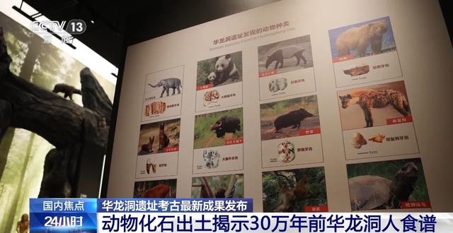 据专家介绍,在华龙洞遗址发现的化石中,动物种类众多,涵盖猕猴、大熊猫、水鹿、大额牛等,其中食肉类动物就有18种,包括黑熊、棕熊,老虎等大型的食肉类动物。