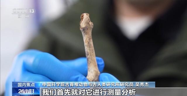 中国科学院古脊椎动物与古人类研究所研究员 吴秀杰:跖骨(化石)是以前从来没有发现过的,这个化石对于探讨当时人类行走的方式以及身高,都有重要的研究价值。我们首先进行测量分析,然后进行形态特征的描述,另外采用CT的方法对内部骨小梁的结构进行研究,来探讨他和现代人的区别。此外我们还要跟世界各地同时代的一些人类相同部位进行比较,进一步论证当时人类的行为方式。