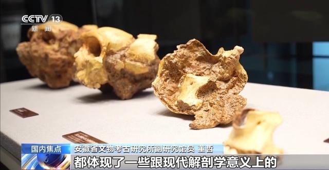 安徽省文物考古研究所副研究馆员 董哲:我们在室内系统进行整理的时候,也发现了一些比较有趣的现象,首先第一个就是华龙洞人无论是头骨还是肢骨、牙齿,都体现了跟现代解剖学意义上的现代人比较接近的性状。比如说股骨上面有一些能够更好附着肌肉的解剖学性状,这个在同时期其他古人类遗址发现的古人类化石上面是很少见到的。