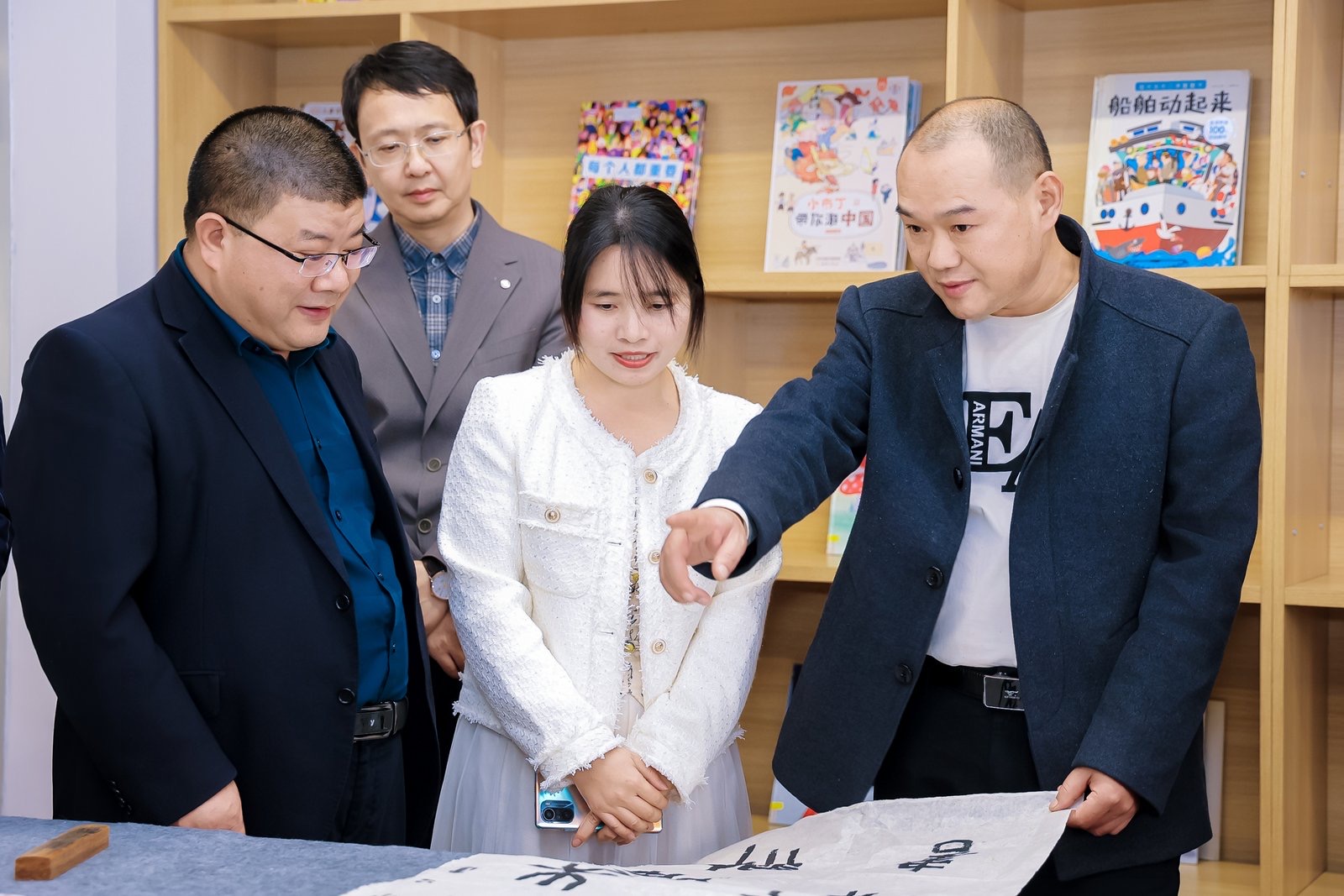 揭牌仪式后,中国书法家协会会员沈桂林带领深高东师生进行现场书法创作,与会者驻足围观,感叹沈桂林的书法创作既古朴端庄,又变化多端,彰显大家之气。深高东的师生从隶属入手,书写有关阅读名言。沈桂林对师生的作品进行逐一点评:“透过师生的书法创作,可以看到深高东这所学校是有底蕴的学校,充盈着浓浓的文化气息。”