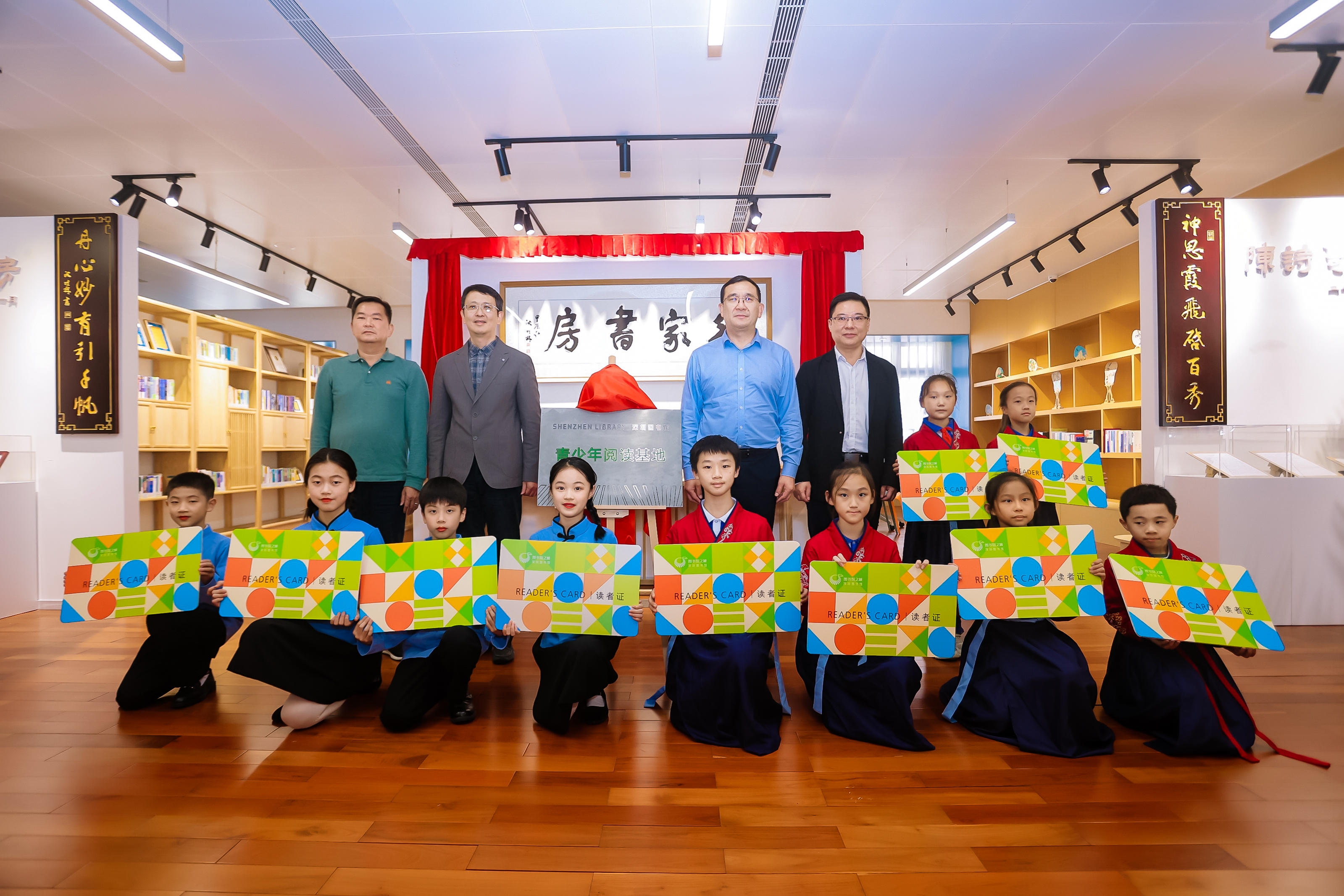 名家书房揭牌后,深圳图书馆第16家“青少年阅读基地”也正式揭牌,这是继聚龙科学高中后,深圳图书馆在坪山区设立的第二个“青少年阅读基地”。现场还为学生代表颁发“鹏城励读证”,学校师生持证可便捷享受全城1128个图书馆网点的统一服务。