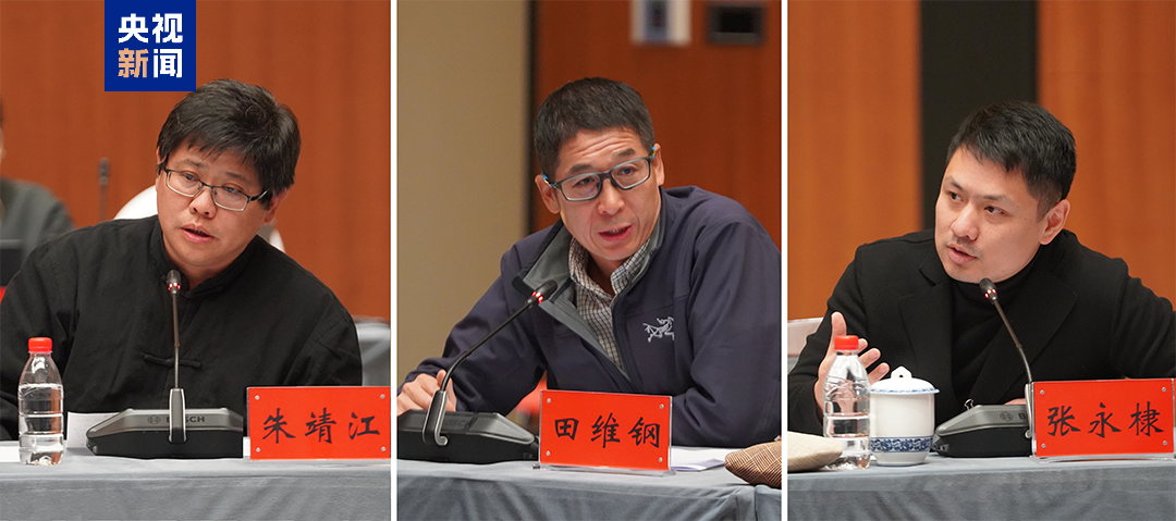 △左起:中央民族大学影视人类学研究中心主任、教授朱靖江,中国传媒大学电视学院教授田维钢,中国历史研究院历史文化传播中心主任张永棣