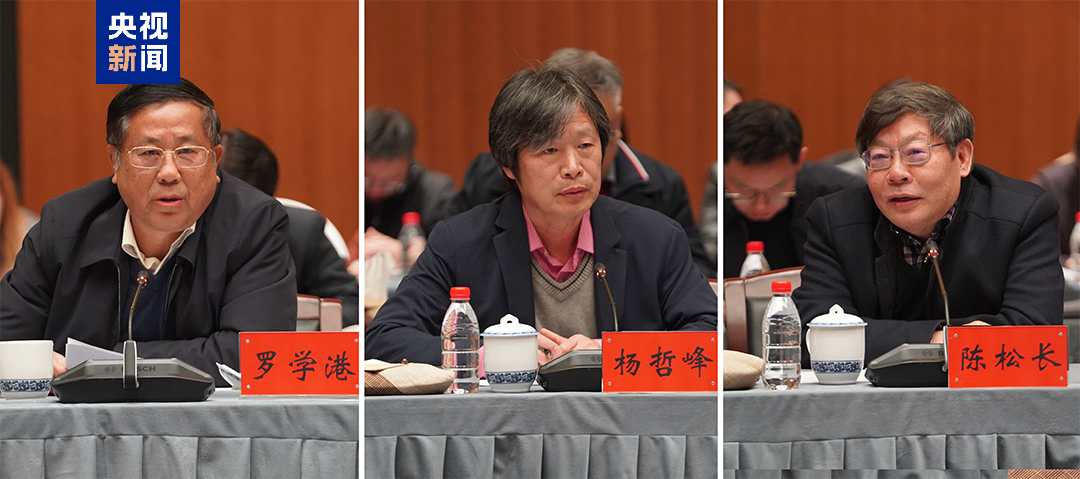△左起:湖南省马王堆古尸和文物研究保护中心原主任罗学港,北京大学考古文博学院教授、《马王堆》学术总撰稿杨哲峰,湖南大学岳麓书院教授陈松长