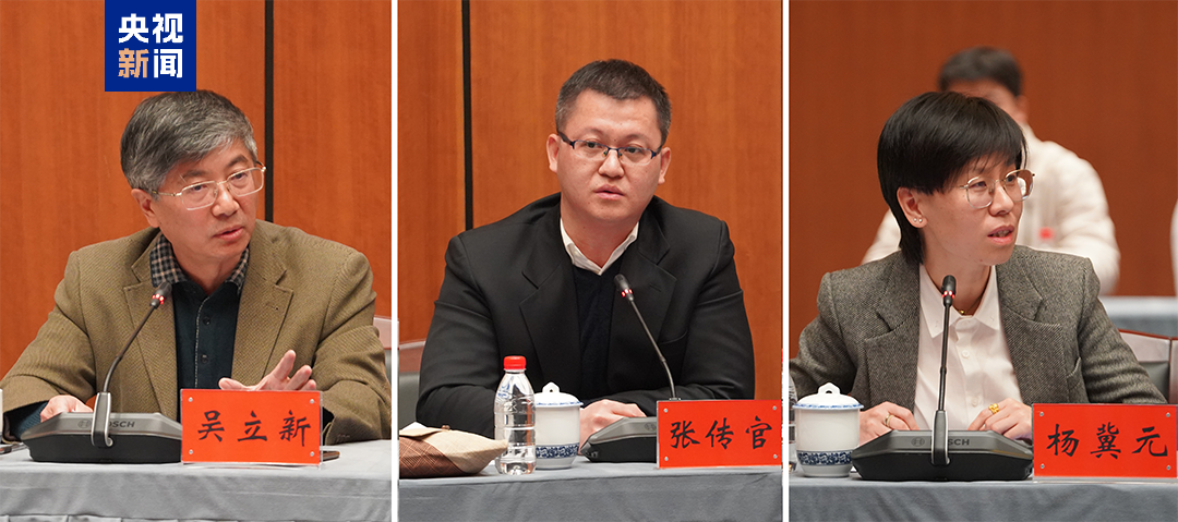 △左起:中南大学地球科学与信息物理学院教授吴立新、复旦大学出土文献与古文字研究中心研究员张传官、南京云锦研究所文物修复部主任杨冀元