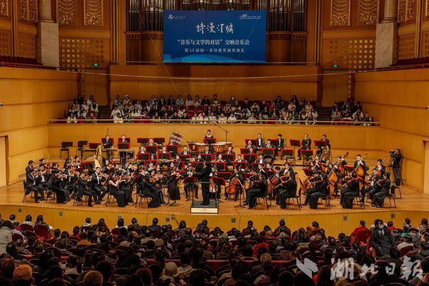 12月14日晚,作为2024(第九届)武汉诗歌节系列活动之一,诗漫江城“音乐与文学的对话”交响音乐会在武汉琴台音乐厅举行。音乐作舟、文学为桨,诗人、诗歌爱好者和听众们共度浪漫时光。