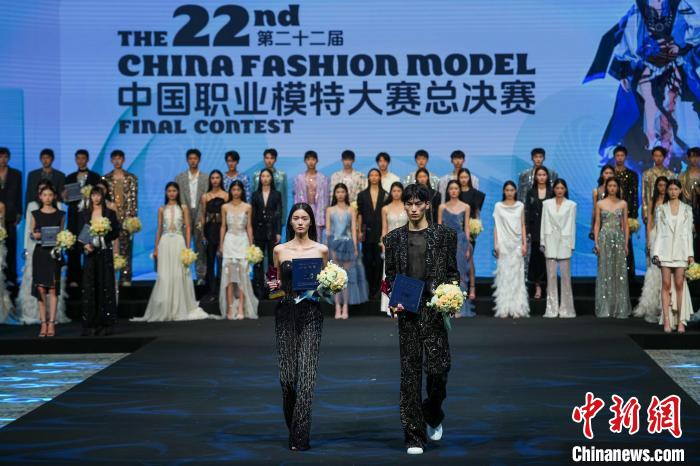 12月21日晚,第二十二届中国职业模特大赛总决赛在北京举办。图为获得男女组别冠军的参赛选手进行展示。 中新社记者赵文宇摄