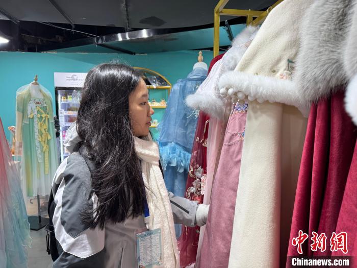 近日,2024年“少年长安行—中外青少年共聚长安文化交流”活动在西安举行。22日,青少年们“入乡随俗”换上汉服,走进唐风市井街区,与“白居易”互动、享受传统美食、学习唐朝礼仪,在市井之中品味着唐朝风韵。图为马来西亚青少年正在挑选汉服。杨英琦摄
