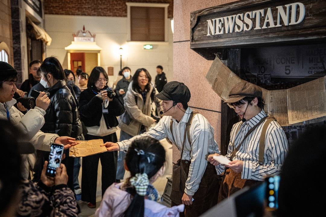 街角里叫卖的报童、221B客厅里熟悉的女性身影、维护治安的警探们,穿梭于人群中的贝克街小分队……27日的上午时分,成都博物馆四楼的临展厅门口已经熙熙攘攘,人潮如织,不少观众头戴着影视剧中常出现的侦探帽,跟随着NPC的脚步走入展厅中,还不时发出疑问渴望获得有用的信息。而这些不断出现的NPC,他们扮演着书中的角色,也复刻了彼时伦敦各阶层的状态。