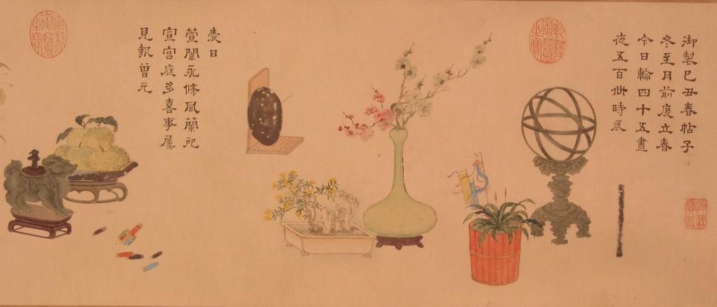 展出的“清董邦达书画御制己丑春帖子图卷”局部。(沈阳故宫博物院供图)