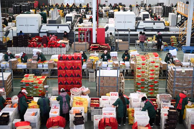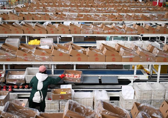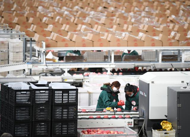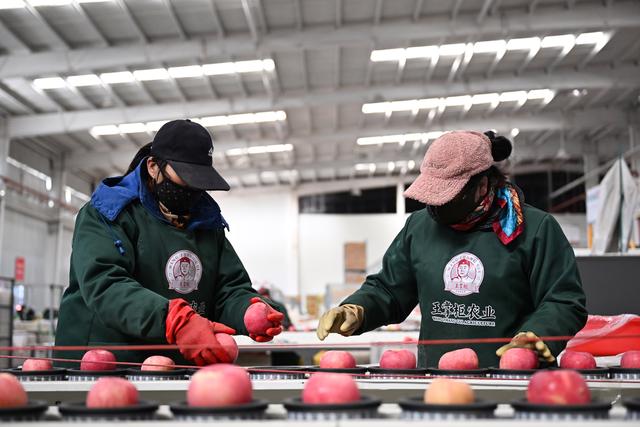 近日,陕西省延安市洛川县迎来苹果销售旺季,果业企业生产车间一片火热景象。位于黄土高原地区的洛川县是苹果优生区,近年来,洛川县不断促进苹果产业高质量发展,让小苹果成为乡村振兴大产业。2024年,洛川县苹果产量约114万吨。