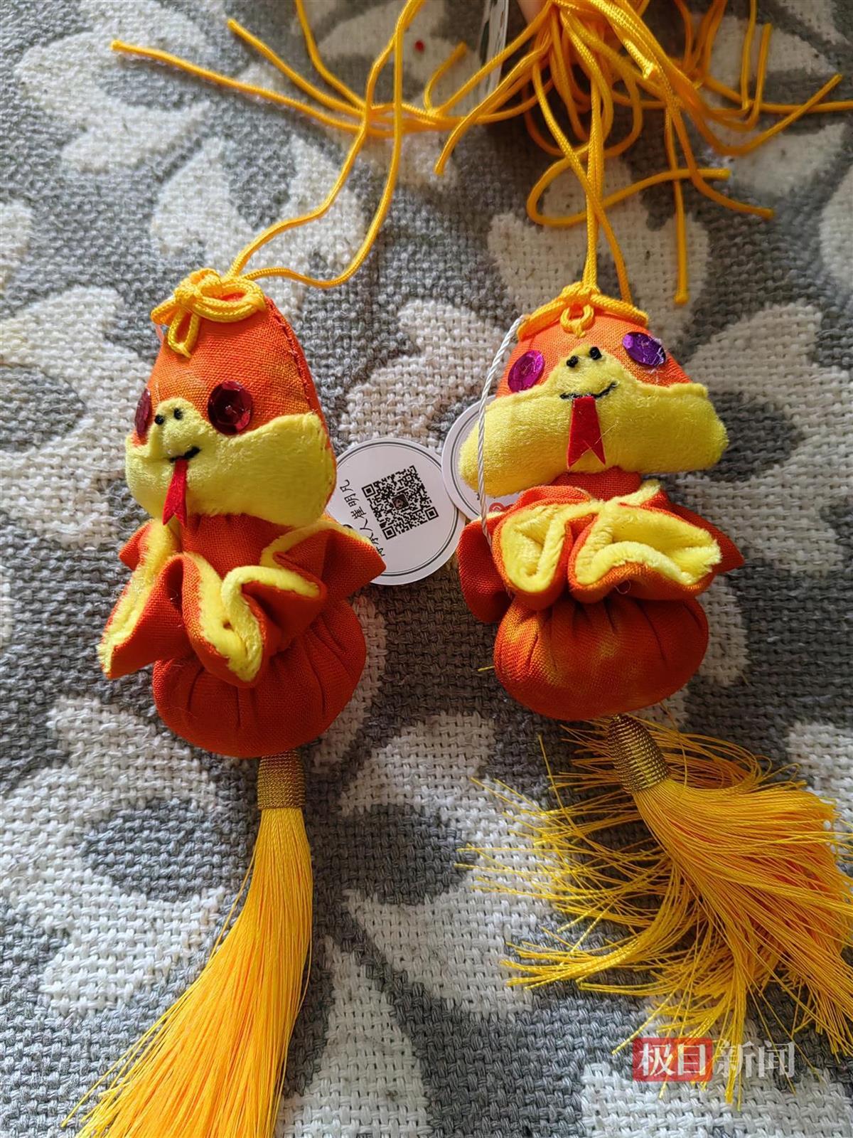 据崔明凡介绍,为了迎接蛇年春节,她设计了以蛇为造型主体的限量款香包,还有福字香包、“年年有鱼”香包等,为传统佳节增添非遗氛围。