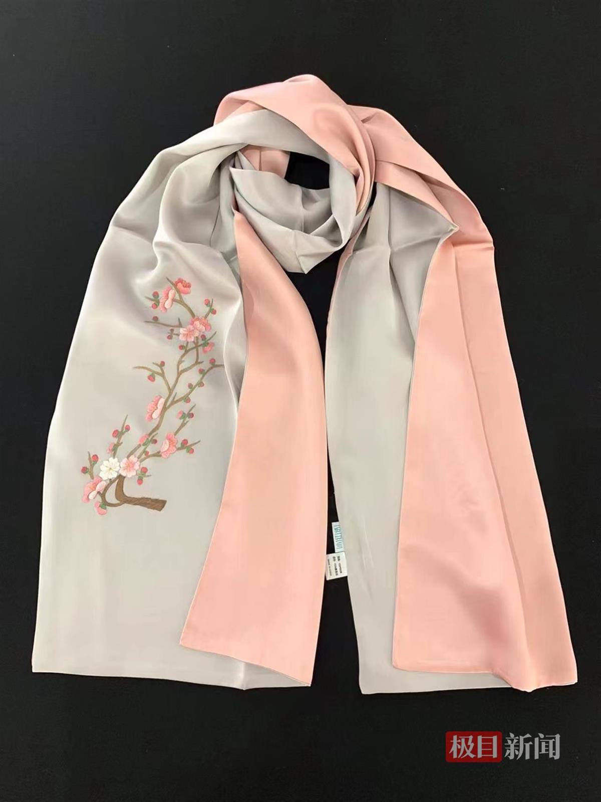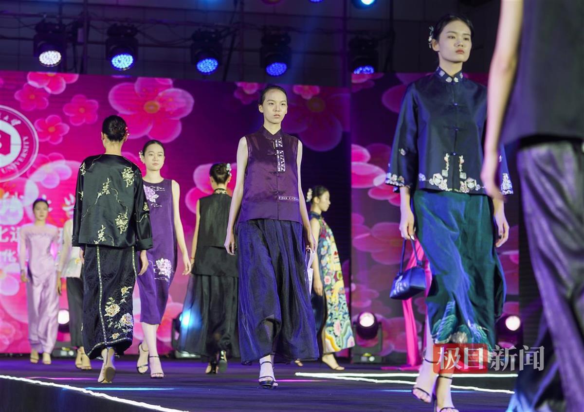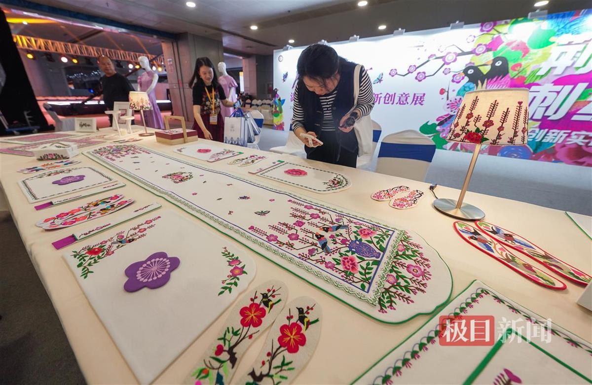 武汉纺织大学服装学院教授、湖北省非物质文化遗产研究中心主任叶洪光告诉极目新闻记者,可能很多人一说起非遗,还觉得这是古老的艺术,距离他们的生活很远,但其实荆楚纺织中的非遗元素在与当代时尚设计互相“碰撞”后,创新设计出来的产品非常适合现代家庭使用。比如,运用了汉绣、红安绣活、黄梅挑花、英山缠花等多种刺绣技艺的桌旗、餐垫、床品、靠枕、台灯、梳妆盒等,“这些时尚单品非常符合年轻一代的审美,也很有节日氛围。”叶洪光说。