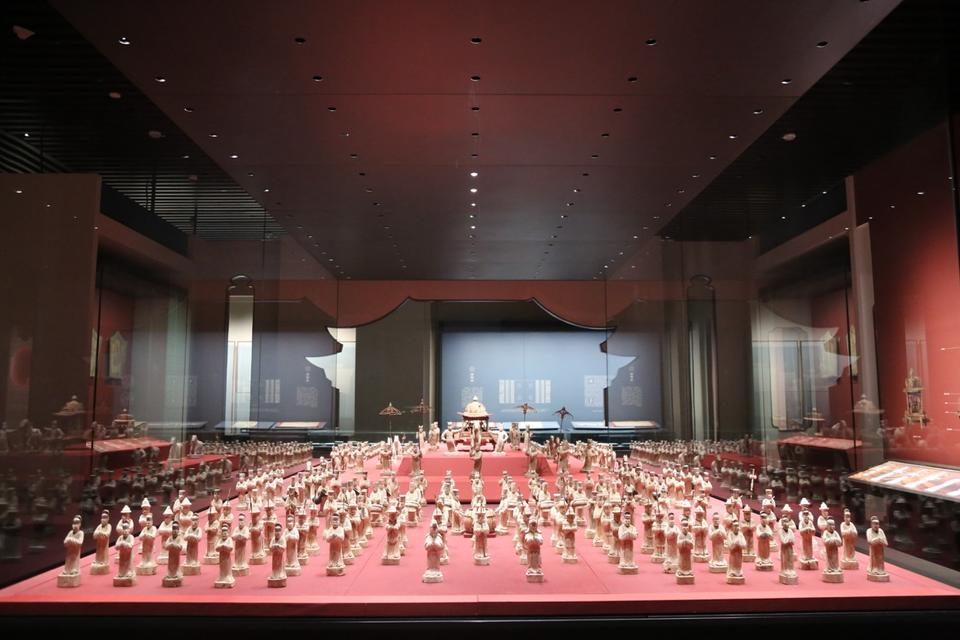 展厅借鉴中国古代“中轴对称”的建筑布局方式,展览的五个部分形成一个严肃、方正、有序、均衡的有机整体,展现出王权的威严。
