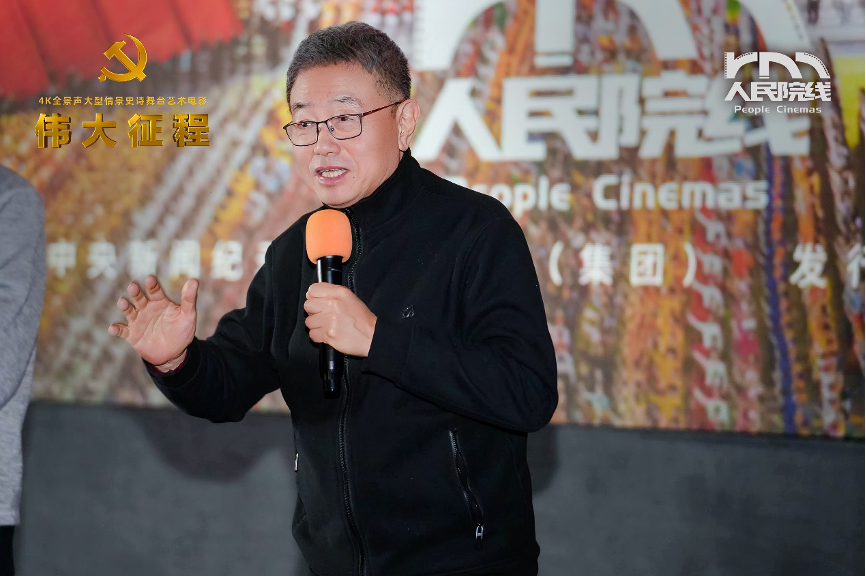 在三地路演中,影片的艺术魅力与主创团队的真诚分享赢得了观众的热烈反响。杭州站活动时,总导演侯克明回顾了电影创作的初心与历程。他表示,电影《伟大征程》是向建党百年献上的诚挚礼物,希望通过独特的视听语言将这段重要的历史记忆传递给更多观众。电影总制片人朱勤效则分享了拍摄背后的技术突破与团队合作,特别提到影片拍摄采用了18台8K电影摄影机,以高度还原演出现场的震撼效果。