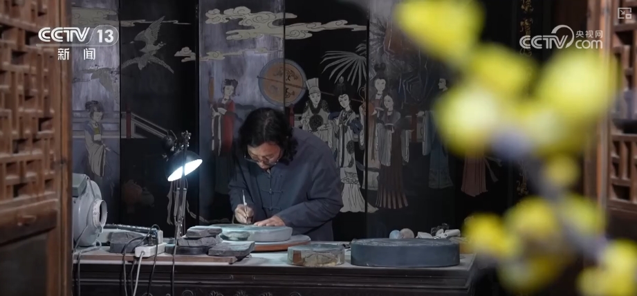 以刀为笔,刻石成画,一雕一琢,将自然和技艺完美地结合。在一方砚中,浓缩了中国优秀的传统文化,在千年时光流转中,代代传承,在新时代发扬光大。