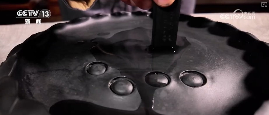 广东省端砚协会会长王建华介绍,端砚的砚石特别的好,它的硬度很适合进行雕刻。墨条在磨墨的时候,可以把砚石的一些成分融在了墨汁里,会显得柔润发亮、层次分明。到了宋代的时候,已经有了宫廷砚。据说,当朝的皇帝下令在端州定制9000方端砚,3000方是宫廷砚使用,3000方用于赏赐大臣,3000方是留下来今后再用。所以,在那个时期端砚已经成为进贡很重要的东西。
