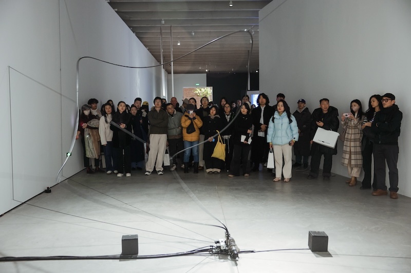 “消逝”探讨存在与非存在之间的边界空间,通过对宏大与微小、永恒与短暂的并置,这一章节挑战了人们对永恒的理解,突显出现实的流动性以及人类在把握全谱存在时的感知局限性。在声学炼金术的领域中,声音超越了其无形的特性,成为空间中的雕塑力量,展览中的这些装置作品挑战了人们对听觉世界及其隐藏作用的理解,重新定义了声音、物体和环境之间的关系。“拓扑学”的线索通过依赖共生的原则探讨机器形态的特征,研究机械、算法和有机过程交织在一起形成复杂系统的过程,考察技术实体与生物实体如何相互融合、彼此塑造又被彼此塑造,揭示了科技与有机现实之间的深刻互联。