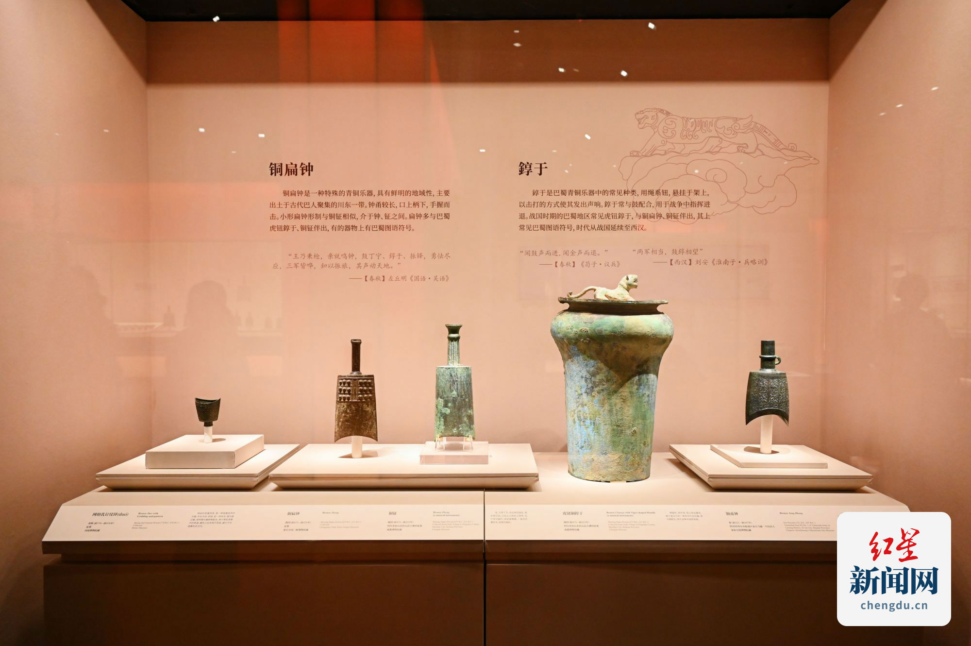 “锦城丝管”特展以时间为线索,分为“神礼之乐——先秦时期的蜀地音乐”“和乐天下——两汉至南北朝时期的音乐流变”“音乐之都——唐五代时期成都音乐的盛景”和“万家竞声——宋元以降剧曲俗乐的争盛”四个篇章,百乐齐鸣,洋洋盈耳,以成都平原及其周边地区在中国音乐史中的高光时刻为亮点,串联起一部恢弘的区域音乐文化发展史。