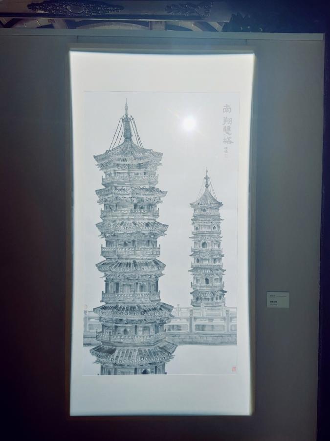 十方画院与嘉定南翔双塔毗邻,青年画家田佳佳绘《南翔双塔》