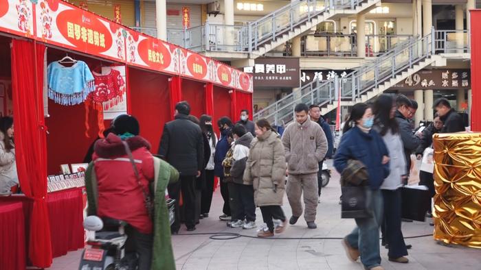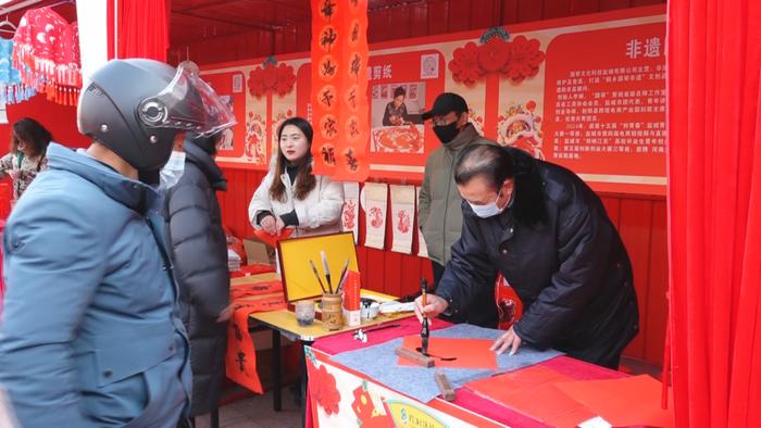 年货大市上,年俗剪纸、手写春联、漆扇手作等特色文化活动精彩亮相,将非遗文化传承一一呈现,吸引不少群众围观参与。大家在互动中体验传统文化,感受年俗氛围。“特意带弟弟妹妹来到现场,感受浓厚的年味和中国文化的博大精深。”刚刚体验了剪纸的顾沈珅兴奋不已。“我们给大家带来了具有蛇年元素的剪纸创作,比如Q版蛇的团扇,还有生肖蛇金箔纸的摆台等等。希望通过年货大市,吸引更多的朋友们零距离感受非遗文化。”国琴非遗剪纸第四代传承人李娴介绍道。