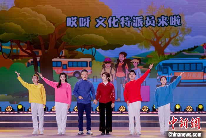 与董凯类似,本次共有11个地级市文化特派员亮相“我们的村晚”。他们共同演绎的曲艺非遗串烧《村里来了文化特派员》,以诙谐幽默的风格,结合浙江省文化特派员的真实故事,通过歌舞、曲艺、皮影戏等多种艺术形式,生动展现了他们在推动乡村文化建设中的辛勤付出和显著成果。
