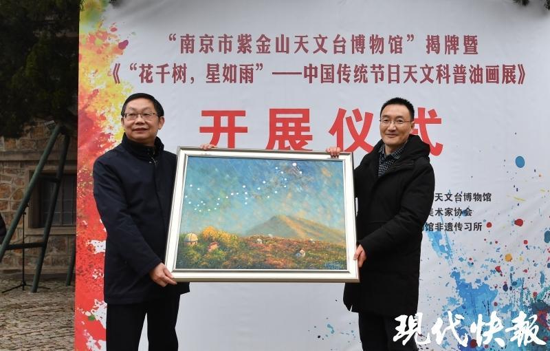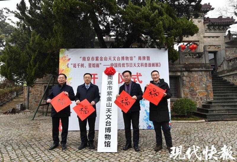 现代快报讯(记者张然/文赵杰/摄)南京的博物馆又上新了!1月26日,位于紫金山天文台景区内的南京市紫金山天文台博物馆正式揭牌,同时,《“花千树,星如雨”——中国传统节日天文科普油画展》同步开展,展览预计将持续至5月上旬。