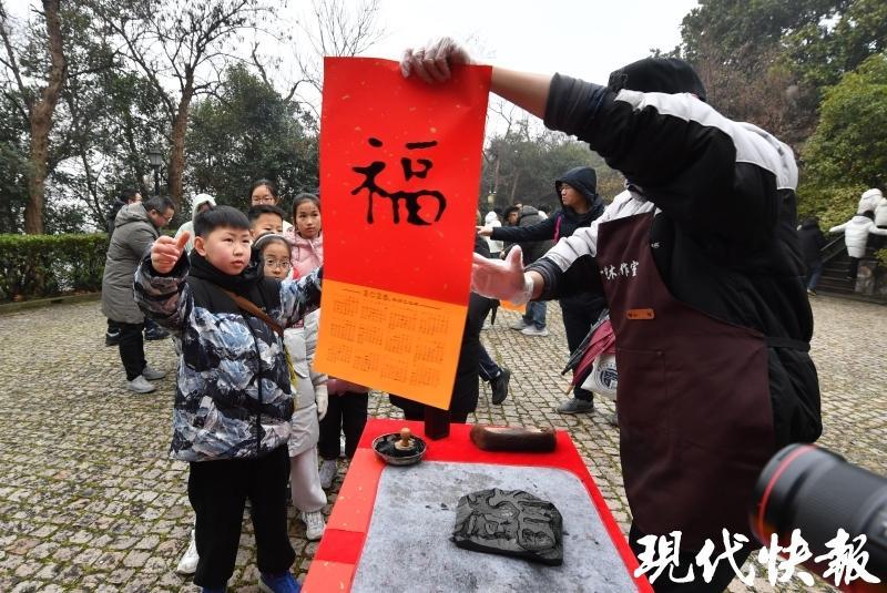 开展仪式上,策展人之一、油画作者罗方扬介绍了本次展览油画的创作初心,同时将画作《龙吟紫金》捐赠给紫金山天文台博物馆。明孝陵博物馆非遗传习所的志愿者现场拓福,赠送给现场观众,祝贺紫金山博物馆聚落再添新成员。