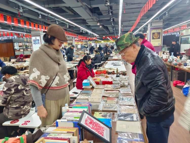 韦泱告诉记者:“今天特地选个春节假期当中的日子,来福佑路新藏宝楼四楼旧书市集逛逛。在爱书人眼中,节日的旧书市集其实和豫园一样,也是一个文旅风景点,让喜欢书的读者和游客有个心仪的去处。