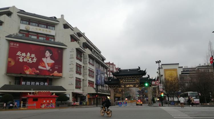 早上7点零5分,到达豫园门口之后,“一片云”拍下了一张现场照片。一位市民骑着黄色的共享单车经过豫园灯会红色的售票厅,第一波游客此时尚未到达,再过十多个小时,这里将是人头攒动的大型灯会现场的入口处。