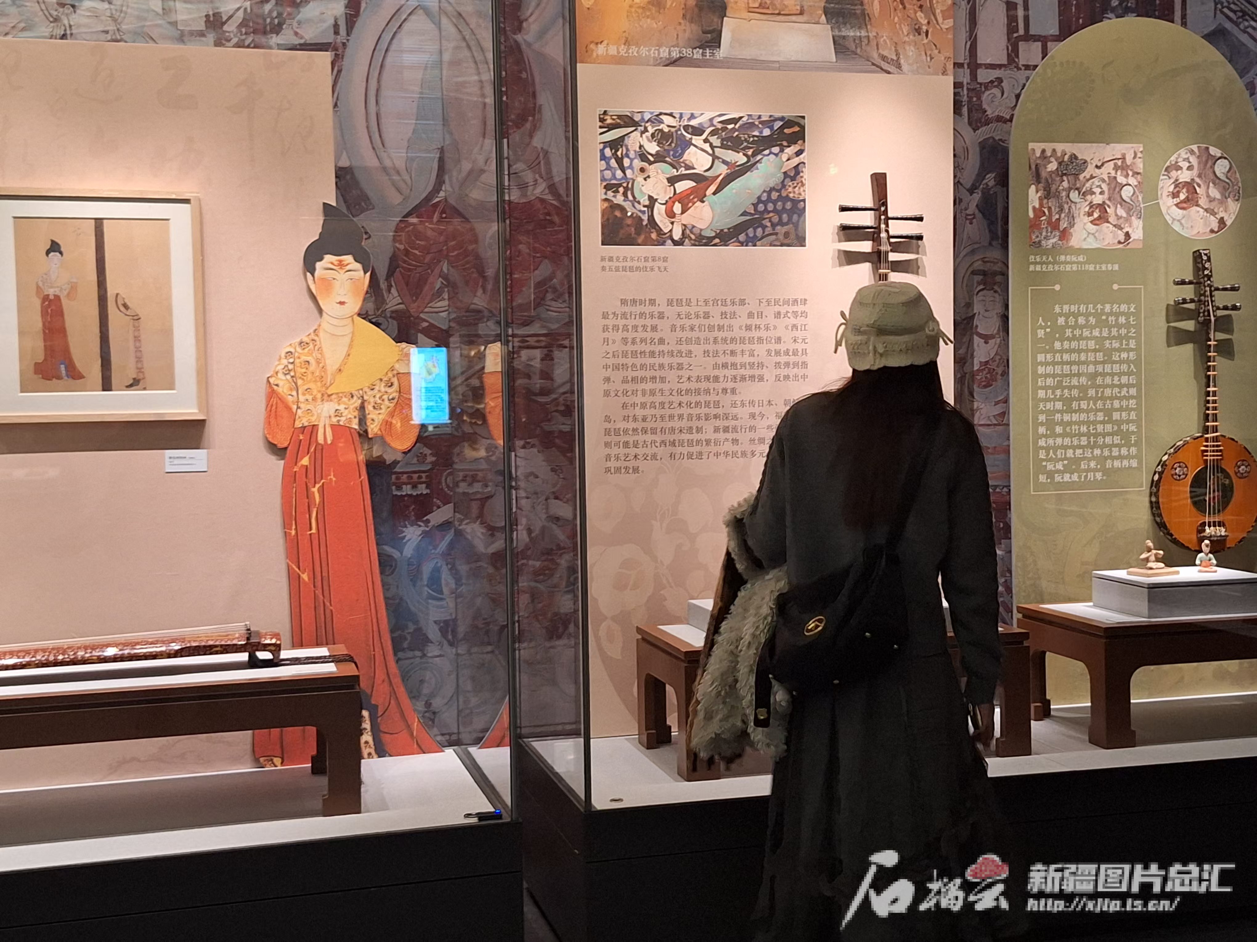 “这里展出的各类乐器,见证了从古至今丝绸之路上新疆的乐舞文化,不仅揭示了新疆‘歌舞之乡’的艺术渊源,也彰显了中华民族交往交流交融史的非凡魅力。”新疆博物馆陈列部工作人员、该展策展人之一的马雯介绍道。