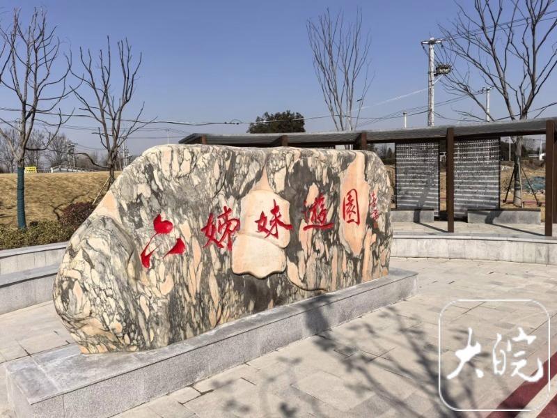 大皖新闻讯2月10日中午,大皖新闻记者在淮河淮南姚家湾段大堤南侧,看到一块石碑,上面写着“六姊妹游园”,记者了解到,电视剧《六姊妹》中,何家老太太何文氏带孙女何家丽挖野菜镜头,就是在“六姊妹游园”位置拍摄。