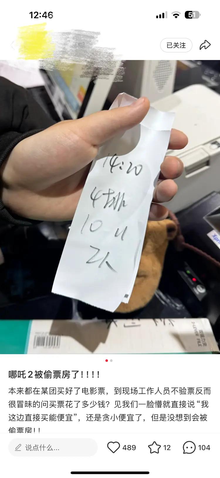 2月9日,青海一博主发帖称,自己一行三人去看《哪吒2》,买到的电影票没有打印、电影信息,影厅、时间和座位号均系手写,怀疑是偷票房,并向中国电影协会公众号电影票房监督进行了举报。