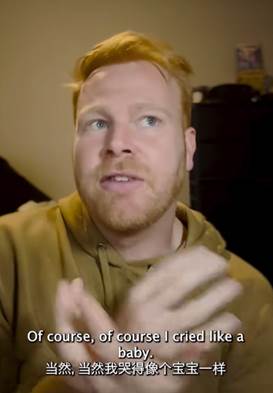 网名Joey的外国网友在观影后,把脸都哭红,他发视频称,“幸好自己是一个人驱动电影,我哭得像个宝宝一样”。