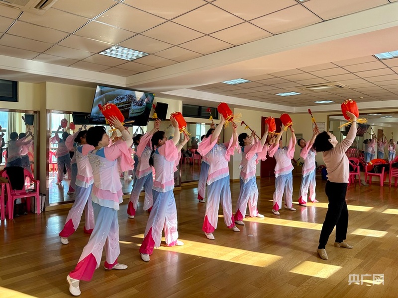 舞蹈房内,李震霞和花鼓演员们舞动着手中的道具,笑容灿烂,动作刚柔并济,将泰兴花鼓的欢快、热情和质朴展现得淋漓尽致。莲湘中的铜钱随着动作发出清脆的声响,与欢快的舞蹈节奏相得益彰。