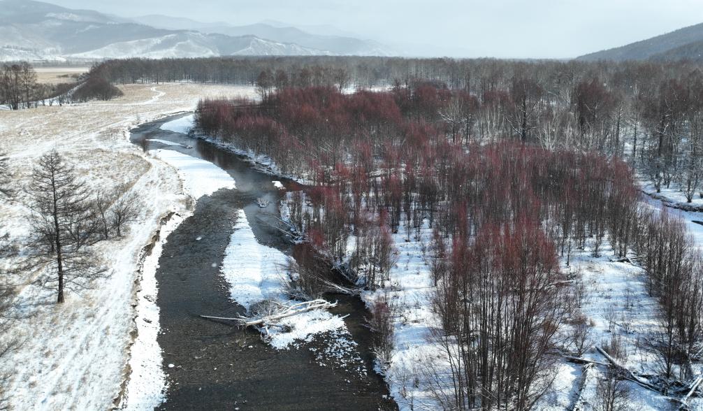 2024年11月11日在内蒙古呼伦贝尔市扎兰屯市拍摄的红毛柳(无人机照片)。新华社记者 贝赫 摄