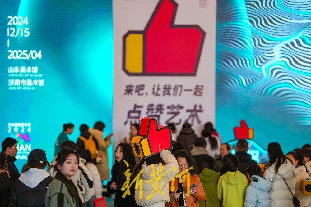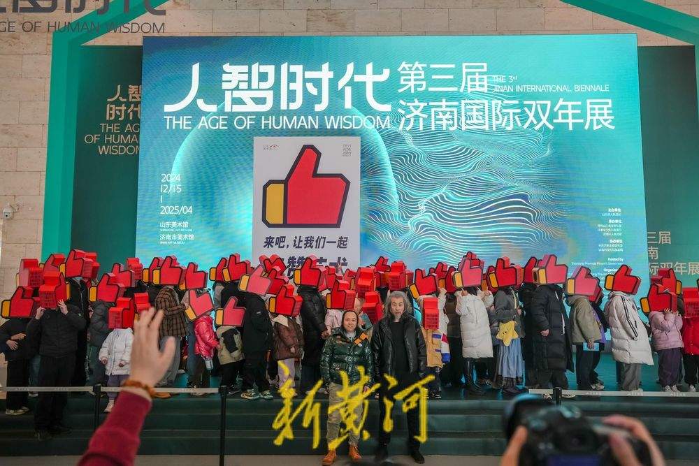 2月22日上午,济南国际双年展备受瞩目的表演艺术作品——《来吧,让我们一起点赞艺术》(Let'sGiveArtaThumbs-up)亮相山东美术馆。这一创新作品不仅标志着表演艺术形式首次被纳入济南国际双年展,也是山东美术馆首次呈现此类艺术形式。