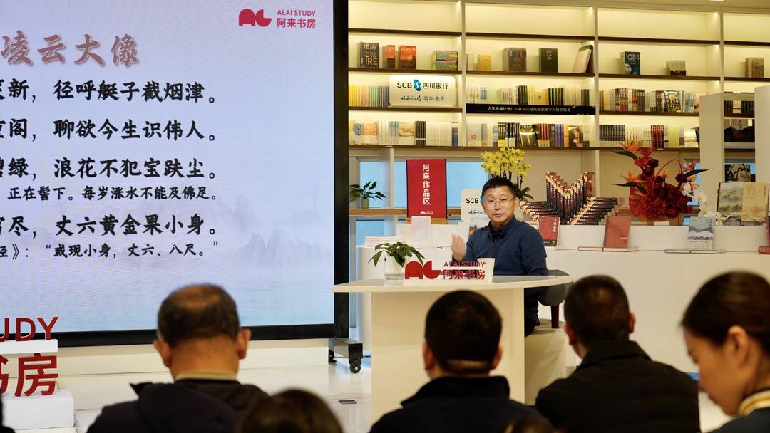 细雨润蓉城,阿来书房内氤氲着诗墨芬芳。2月22日下午3时,作家阿来的“唐宋诗中的巴蜀与成都”系列讲座第十一讲顺利举行。本场讲座中,阿来以“聊欲今生识伟人”为主题,以陆游1174年在乐山所写的《阅凌云大像》这首诗为线索,分析陆游追求超越的精神世界。封面新闻客户端对这场讲座进行了全程视频直播。