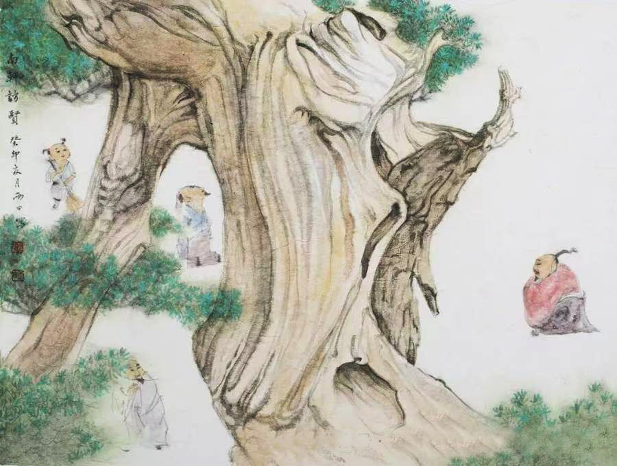 董雷先生时常说自己的画“无师无派”。其实他于绘画是转益多师、博采众长,中西绘画中,凡有用之法,皆为我法。他的画路很宽,山水、花鸟、人物各臻其妙,尤以扬州风土人情最为得意。这次展出的作品,以5A级瘦西湖风景区的名胜古迹、风流传说、花草树木为主要对象,让观者如在画中游,流连忘返。松荫高士古厚朴拙,展现了高士人品坚贞不渝。