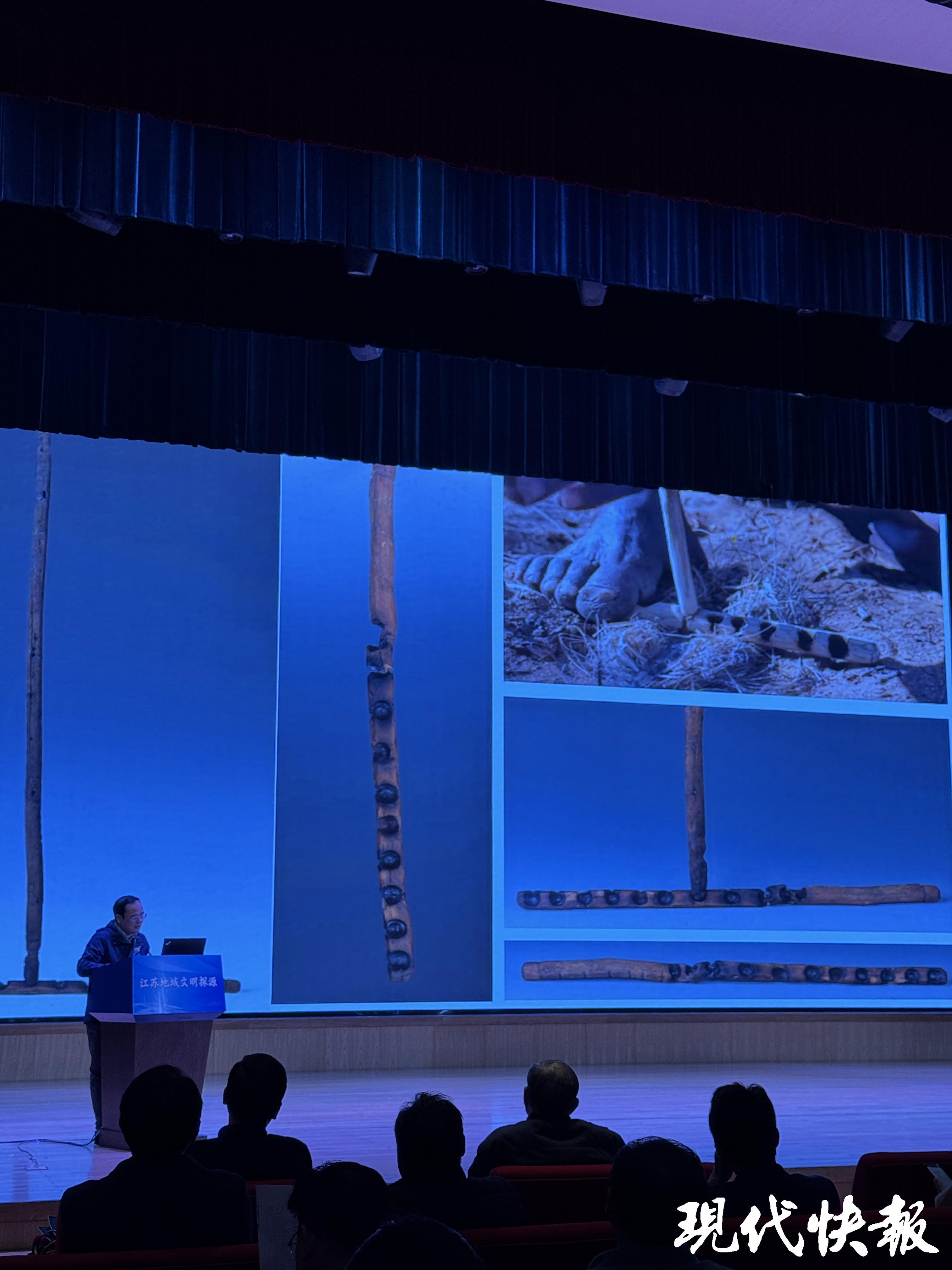 现代快报讯(记者裴诗语胡玉梅/文钱念秋/摄)2月28日,江苏地域文明探源工程2024年度报告成果汇报会举行。会上,江苏省文物考古研究院研究馆员,草堰港遗址项目负责人甘恢元做兴化草堰港遗址发掘报告。