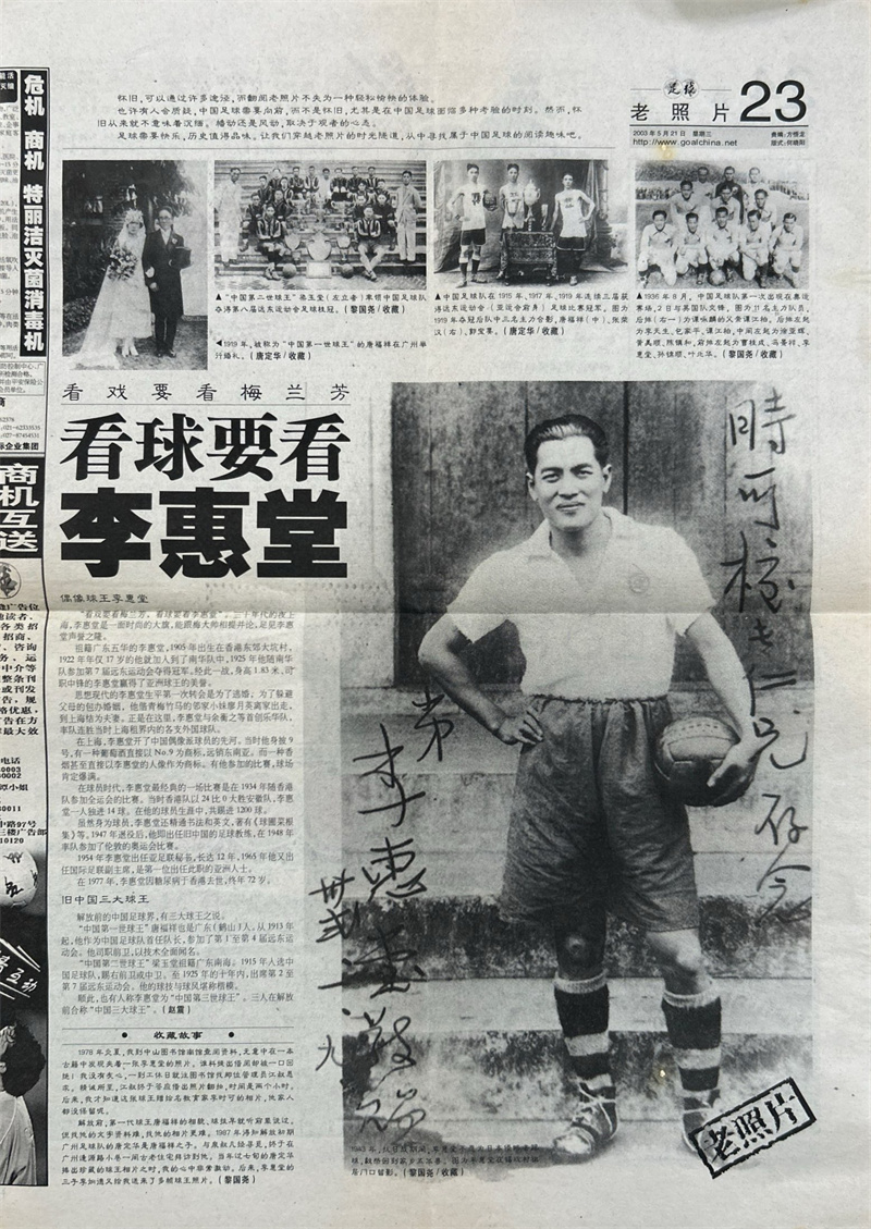 退役后的李惠堂活跃在足球圈,做了好几项开创先河、独树一帜的事。第一,1941年10月起他开始为香港电台主持每周五晚的足球节目,是中国的第一位足球评述员。第二,他著书立说,且产量颇高,如《足球经》《球圃菜根集》《香港足球五十年》《足球技术》《足球规则诠释》《杂果盘》《足球登龙术》《足球读本》等。第三,获得英国足球总教练的文凭,并获得国际足联颁发的国际裁判证书,成为中国第一位获得国际裁判资格的人。先祖父的这些著作、书籍以及记录历史的证照档案等纸质文献、家谱都传到了长孙的李松濤博士手上,而这些也正是近年来复旦的图书馆、中华古籍保护研究院极为重视的内容。