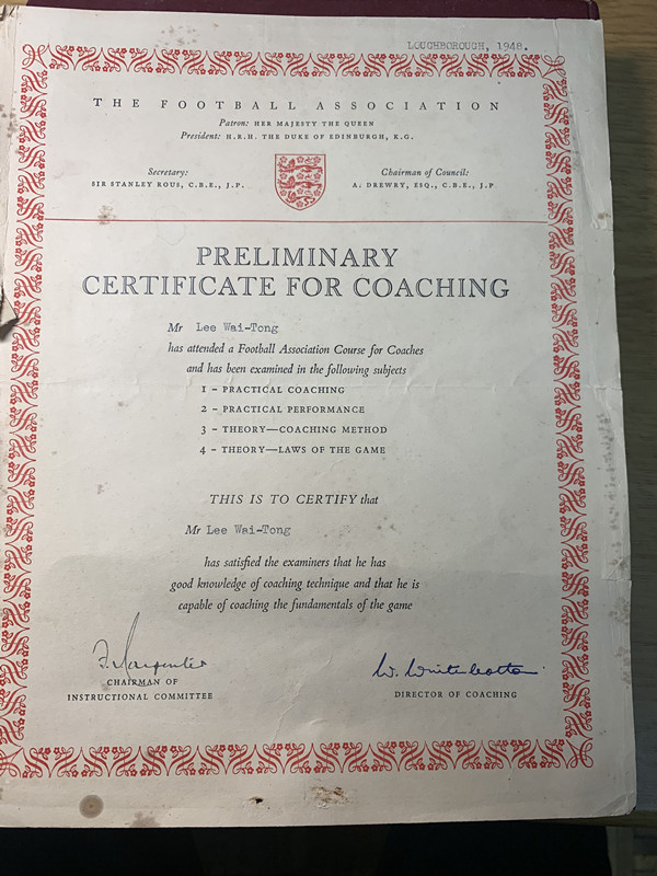 李惠堂所获英国颁发的足球教练证书